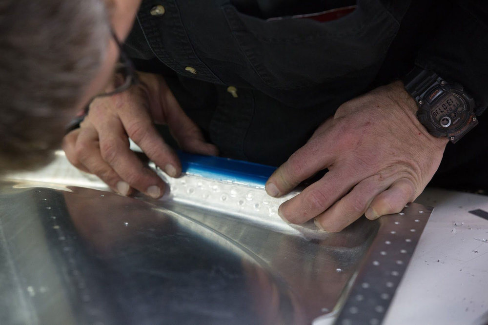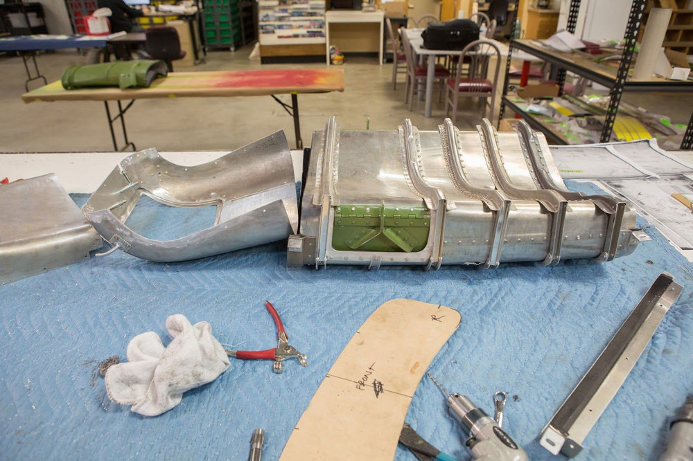Mark works on a precise fit of the skin under the wing center section.