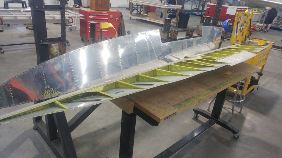 With the wings, horizontal and vertical stabilizers installed, completing them requires control surfaces – so the elevators, ailerons, rudder, and flaps all were part of this month’s work.