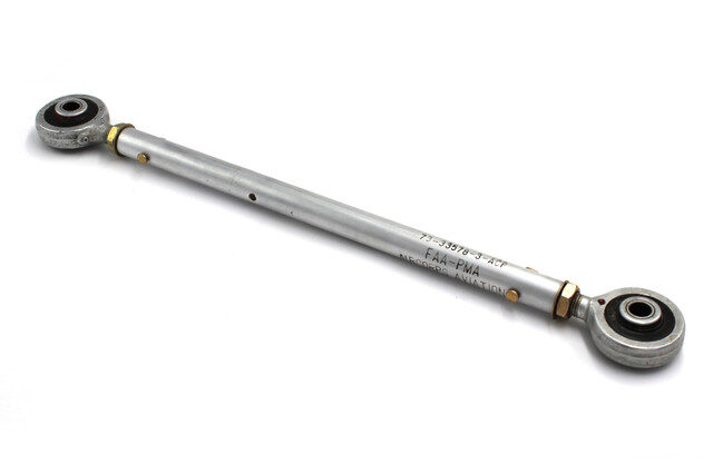 The 73-33578-3 assembly consists of a .625 OD x .120 wall Chrome Moly steel tube that is threaded on both ends to accept two ATE-6N Rod Ends and attaching hardware. Each end is drilled with a clevis pin inserted to secure the rod ends along with a lock washer and nut. It is also vertically drilled and tapped to mount a special bolt that contacts the landing gear down position indicator switch.