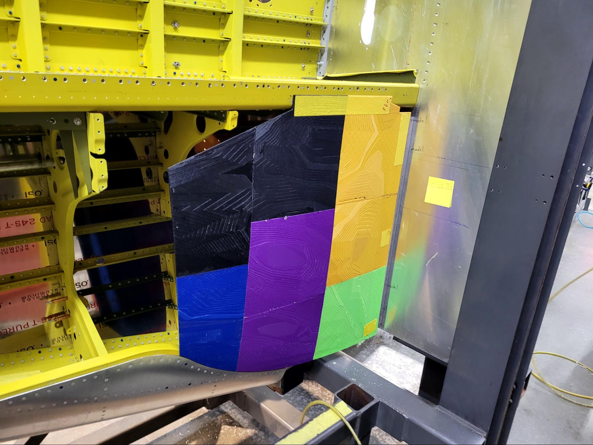 The growth in contract manufacturing AirCorps performed for the broader aerospace industry allowed the addition of a large scale 3D printer. Those capabilities allow rapid prototyping, verification, and fit checking of complex shapes like the clamshell doors (P/N 73-33301) prior to fabrication. In the photo to the right, the patchwork of printed sections when attached create a full scale landing gear door from our