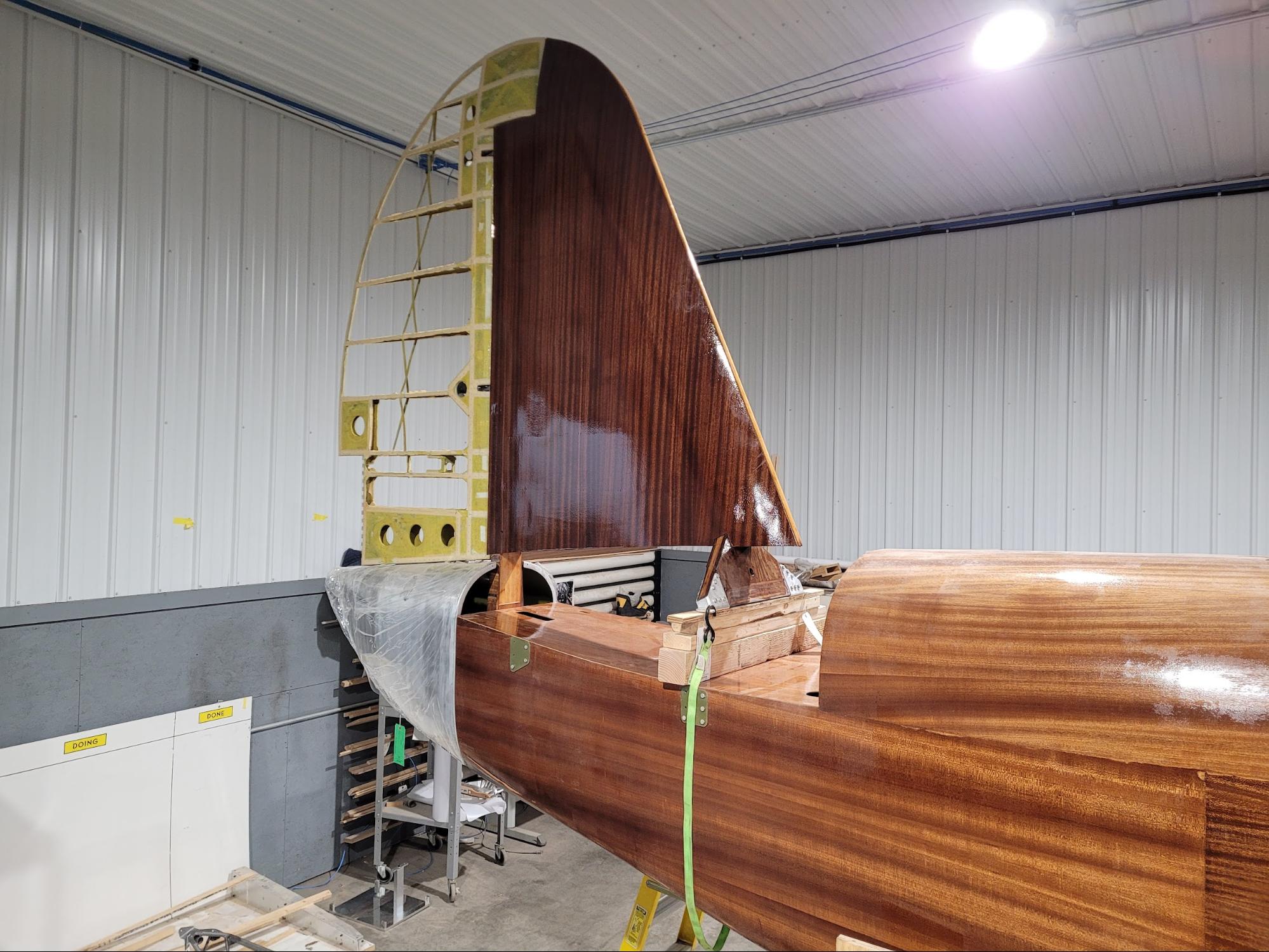 Project manager Aaron Prince finished the internal structure of the vertical fin. Once that was complete, he had to cut and form the skins to conform to the curved section of the fin. Especially challenging was the compound curvature near the top of the rudder.