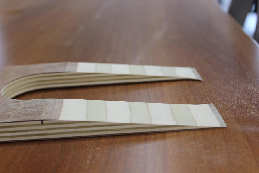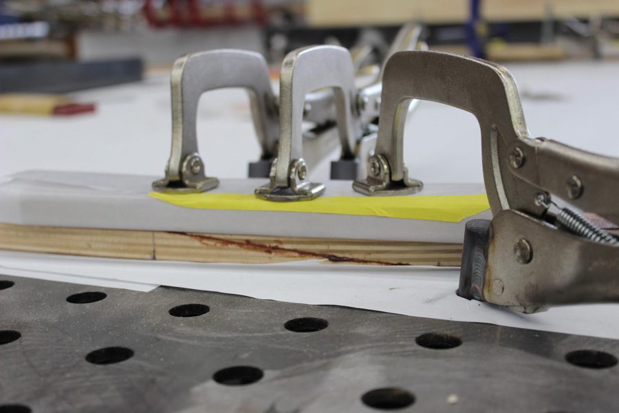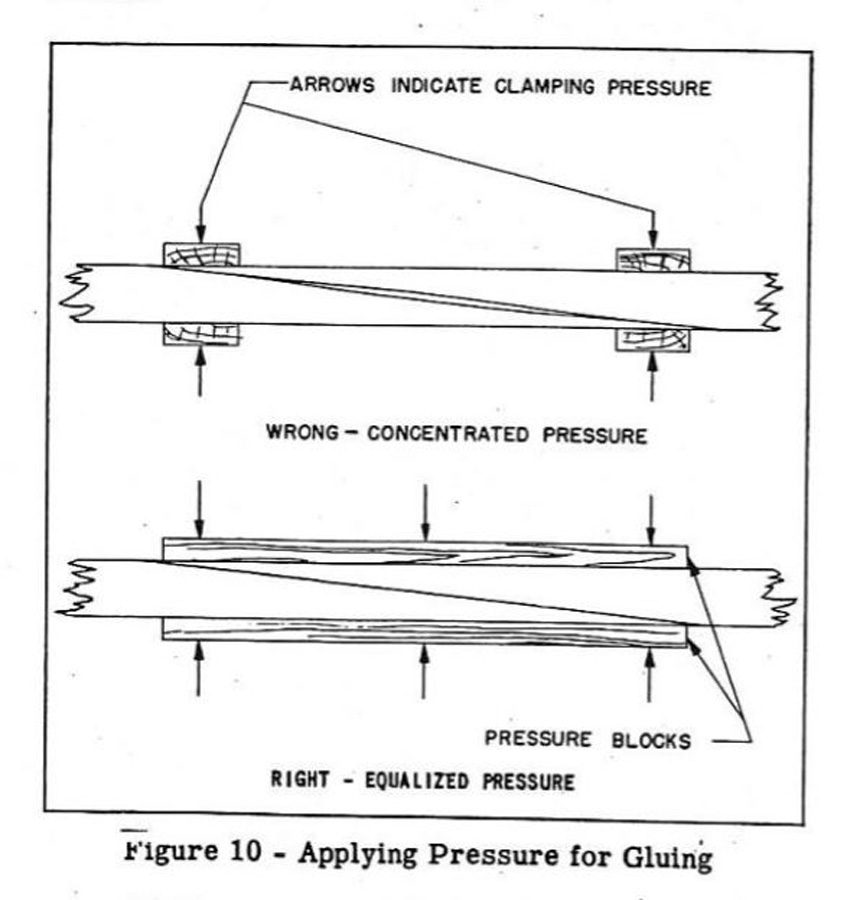 Many components on an airplane like the AT-10 were longer or wider than the available wood material. In those cases, tapered joints called scarf joints were used to increase the gluing area of the joint and create a nearly seamless appearing joint that had far more strength than a simple butt joint would have had.